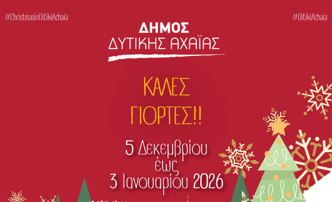 Με ένα πλούσιο, φωτεινό και γεμάτο φαντασία πρόγραμμα, ο Δήμος Δυτικής Αχαΐας φορά τα γιορτινά του και υποδέχεται τη φετινή εορταστική περίοδο, καλώντας μικρούς και μεγάλους να ζήσουν από κοντά τη μαγεία των Χριστουγέννων και της Πρωτοχρονιάς.